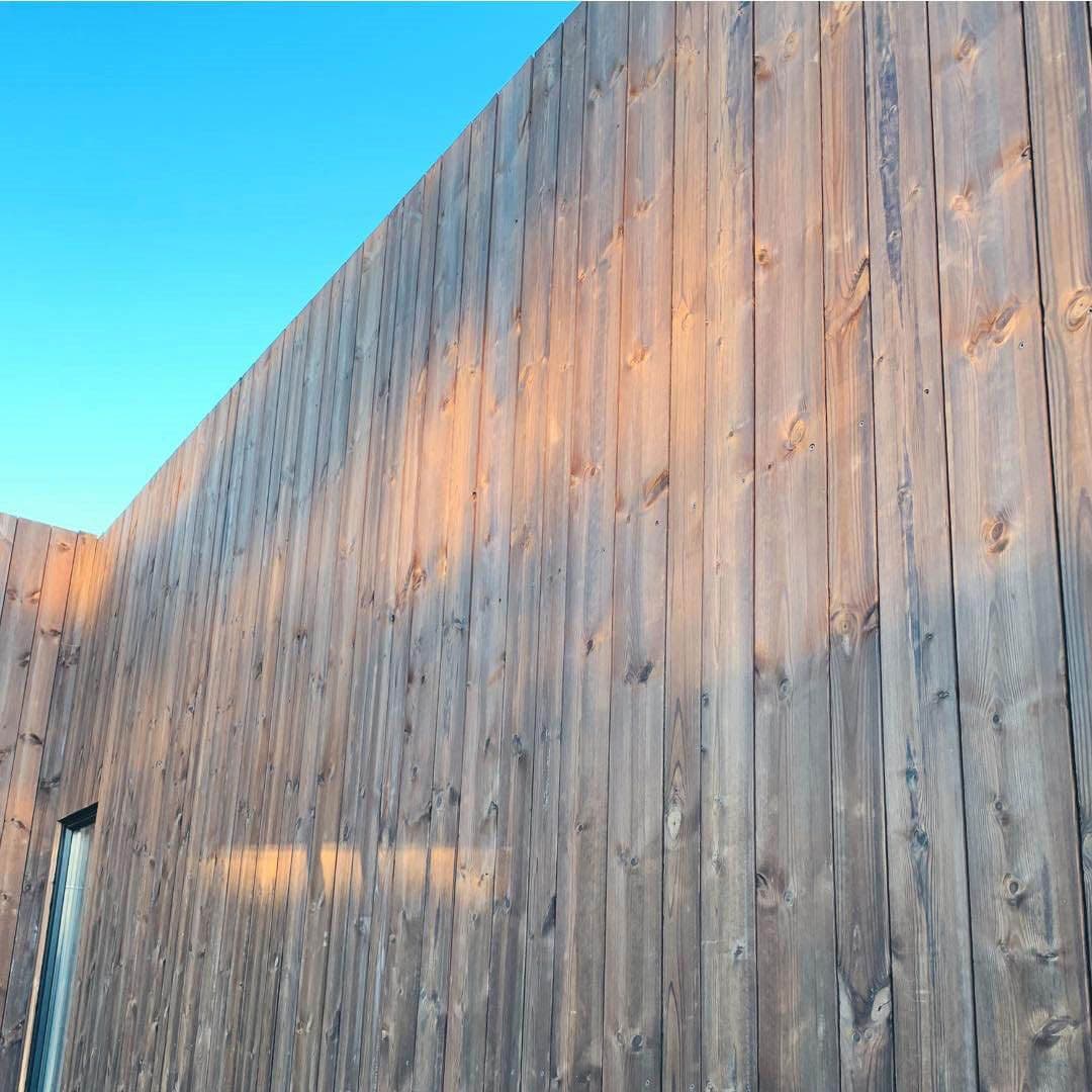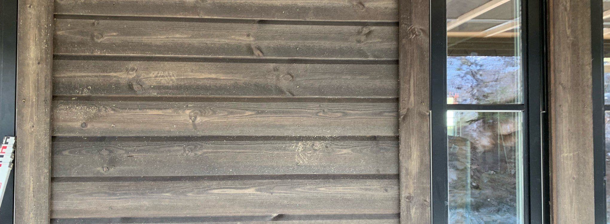 - Kledningen er av gran, uansett type fabrikkbehandlet overflate