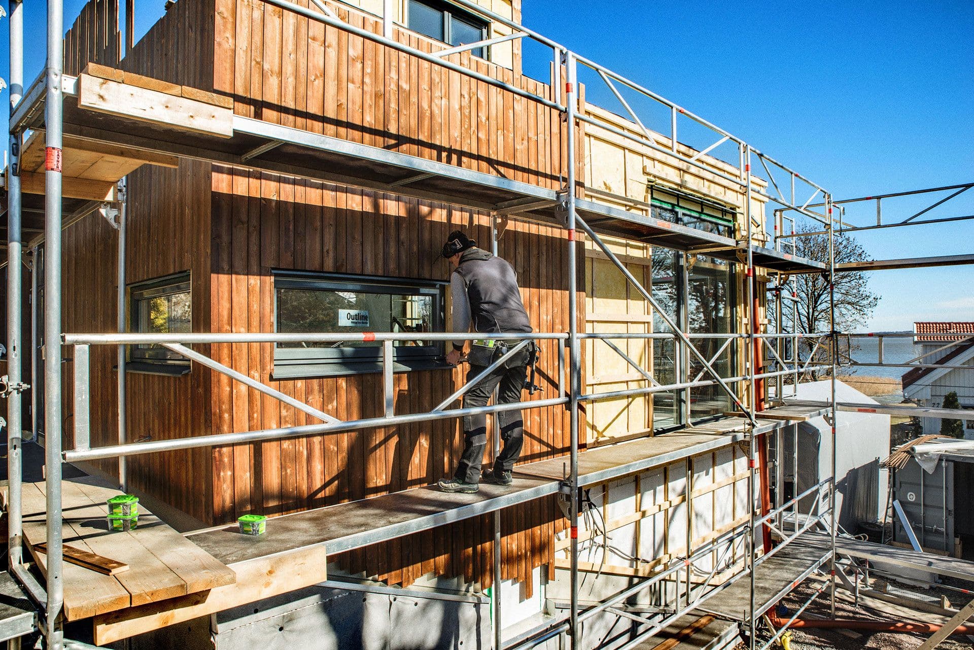 Som nevnt velger svært mange i dag ubehandlet kledning til fasaden, og en slik kledning er kun påført klar grunning på fabrikken.