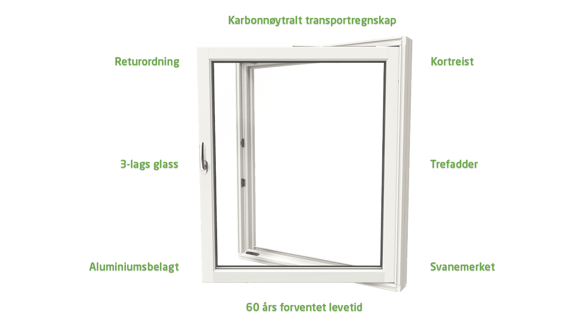 Når produktene konfigureres etter GreenTech-standarden, som inneholder krav om aluminiumsbelagte vinduer og 3-lags glass for bedre isolasjonsevne, resulterer dette i den beste energiytelsen vi kan gi.