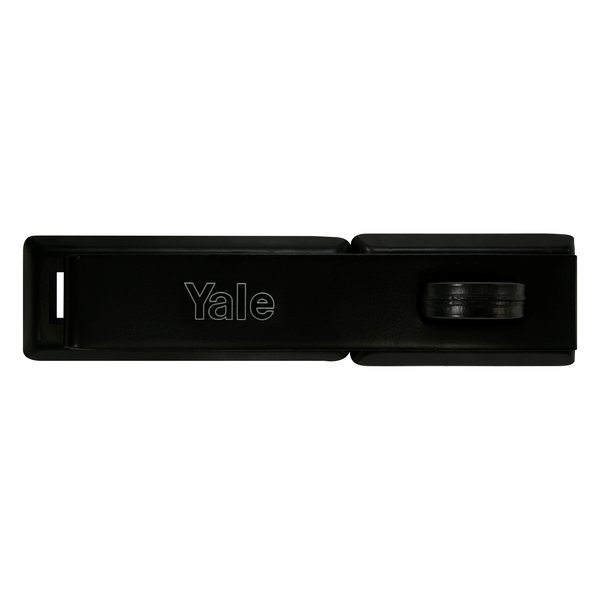 Hengelåshaspe i herdet stål. Skjulte festeskruer for høyere sikkerhet. Skruer inngår. Sort.