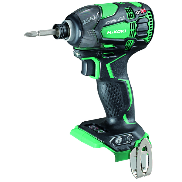 HiKOKI slagskrutrekker batt. WH18DBDL2 18V (Tool Only m/stablekasse HSC). Meget velbalansert og kompakt maskinkropp med kraftig børsteløs motor (gir 30% lenger driftstid mellom hver lading). For tiltrekning og fjerning av skruer, bolter etc. i ulike materialer. "Triple hammer" teknologi som gjør maskinen 25% raskere og gir vesentlig lavere vibrasjon. IP-56: Støv- og vannresistent. Trinnløs høyre- /venstregange med konstant kraft. Elektronisk "Feed Back" kraftkontroll. Fire faste hastigheter. Elektrisk brems. Integrert LED-lys. Påmontert beltekrok og håndleddsrem. Leveres som kun maskin uten batterier, batterilader, men med stablekoffert (HSC - HiKOKI Stackable Case).