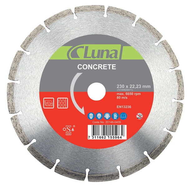 For tørr- og våtkapping av betong, murstein og stein. Gir grovt, raskt snitt. Sintrede segment, segmentert. Maks. periferihastighet 80 m/s.