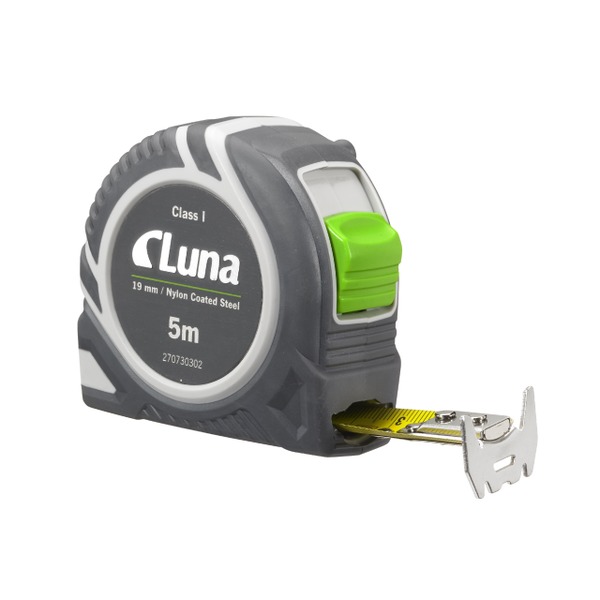 Målebånd av meget høy kvalitet med bremseknapp "Push lock". Innkapslet deksel i slagfast og kuldebestandig ABS-plast. Rett bakre kant for innvendig måling. Gummidetaljer for økt komfort og grep. Stålbånd med dobbel nylonbelegg på gul refleksfri flate for beste synlighet og et meget bra vern mot slitasje. CC 30/45/60 mål på båndets bakside for enkel stendersetting. Endehake og belteklips. Beste toleranseklasse I. Kan verktøysikres med tilbehør. Bevegelig endehake med magnet.