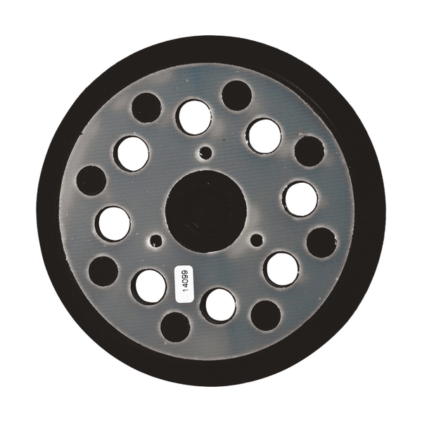 Slipepad til eksenterslipere. Slipepad festes til eksentersliperen med skruer. Slipepapir festes direkte på paden ved hjelp av borrelås.