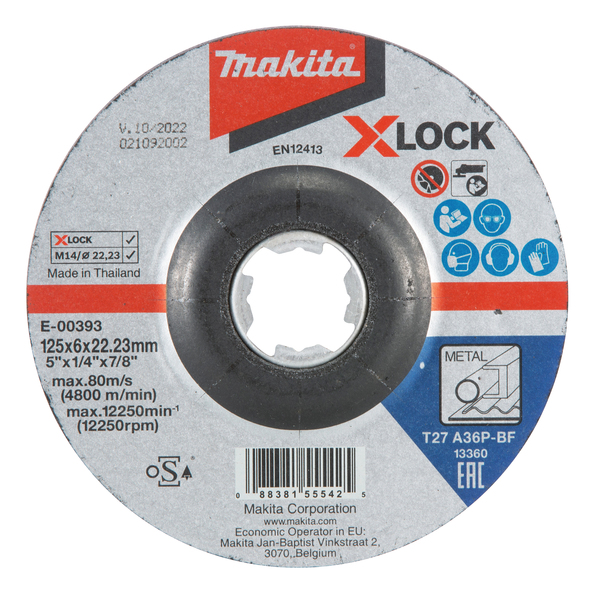Slipeskive 125x6mm med X-Lock senterhull. Brukes til sliping av metall. Slipeskive med grov korning og hard plate sliper meget effektivt. Grov finish.